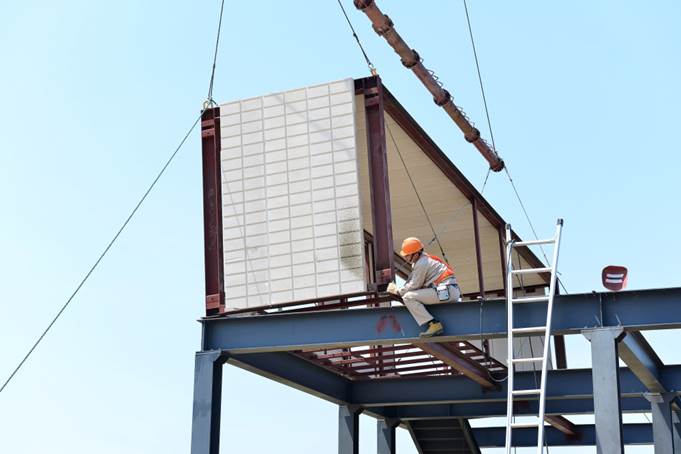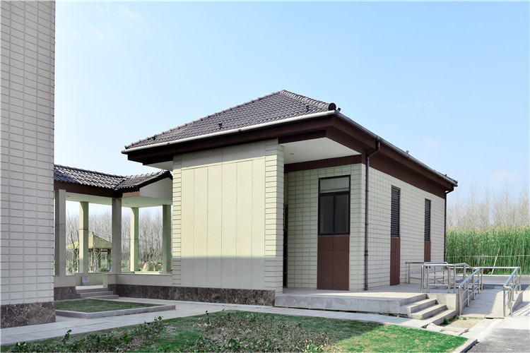 江蘇省臨海高速鹽城大豐休息站位于江蘇大豐麋鹿國(guó)家級(jí)自然保護(hù)區(qū),保護(hù)區(qū)內(nèi)擁有多種國(guó)家一、二級(jí)保護(hù)動(dòng)物。為維護(hù)自然保護(hù)區(qū)的生態(tài)環(huán)境,休息站主樓以及公共廁所決定采用具有綠色環(huán)保性能和產(chǎn)業(yè)化程度高的NALC工廠化預(yù)制成品房技術(shù)和工廠化單元房,一樓采用全干法預(yù)制鋼結(jié)構(gòu)體系和NALC板圍護(hù)技術(shù),所有結(jié)構(gòu)件和板材均定尺加工,在現(xiàn)場(chǎng)按圖組裝,施工便捷高效、保溫裝飾同步完成,產(chǎn)業(yè)化程度高。二層和公共衛(wèi)生間采用了NALC工廠化單元房技術(shù),圍護(hù)墻體采用的是具有保溫裝飾圍護(hù)一體化的綠色環(huán)保新型建材—NALC板材。