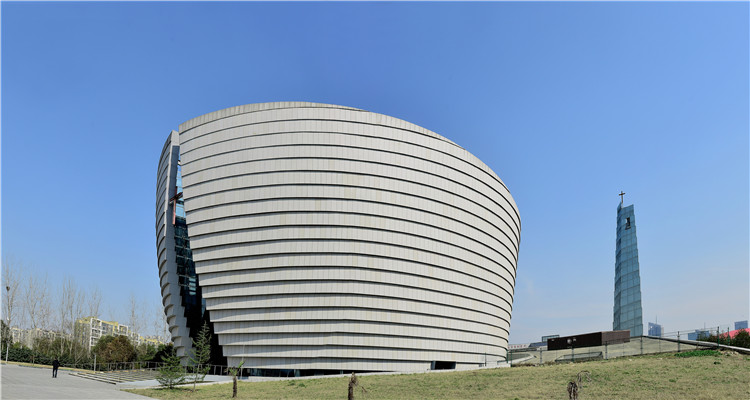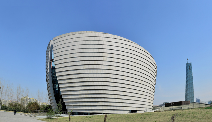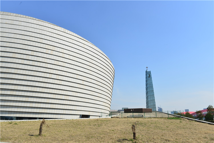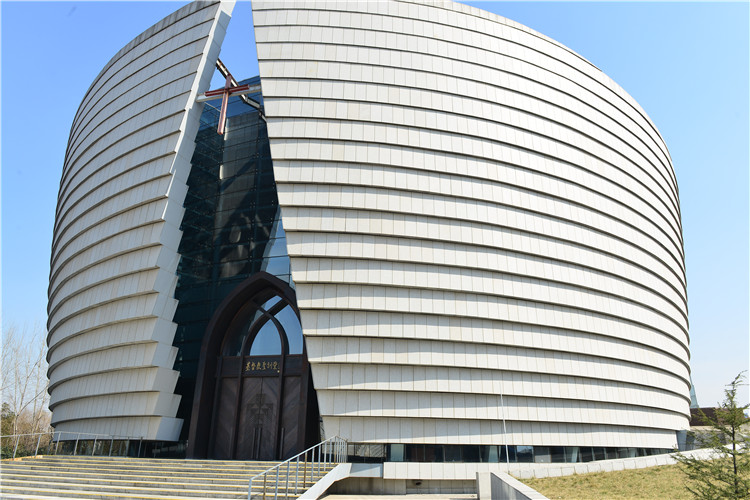 位于南京河西金陵圖書(shū)館北部,建筑面積1.3萬(wàn)平方米,其中主堂建筑面積7063平方米。鋼結(jié)構(gòu)外圍護(hù)采用了旭建公司的125mm花紋板,6000平方的外立面呈倒錐體弧形造型,ALC板材的天然質(zhì)感與教堂的古樸氣質(zhì)渾為一體,莊嚴(yán)、神圣。圣訓(xùn)堂作為國(guó)際化大教堂成為國(guó)內(nèi)外基督徒宗教聚會(huì)、開(kāi)展教職、人員培訓(xùn)和文化交流的重要場(chǎng)所,匹配了南京作為國(guó)際化大都市的宗教功能。